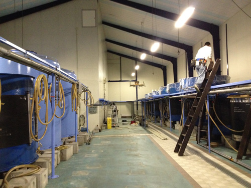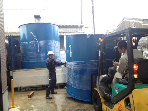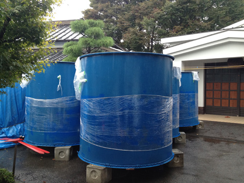 2014/10/15 半世紀以上。 もろみ発酵タンクの入れ替え① 2014.10.15 もろみ発酵タンク(桶)の更新に伴い、古い容器(タンク)が引き取られて行きました。これらの仕込みタンクは、先先代(現蔵元の祖父)が昭和31年に酒造業を復活させた頃に設備したもの。当時は戦後間もない頃で、まだまだ容器の原材料の鉄鋼なども高かったと聞いています。その当時から半世紀以上、泉橋酒造での酒造りをずっと支えて来てくれました。 ご苦労様、そして、ありがとう。 タンク(鉄)も次なる何かにリサイクルされ、世の中の役に立つことと期待します。