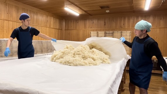 After tane-kiri is complete, the rice is gathered into the center and left to maintain moisture and temperature until the koji mold proliferates by the next day.