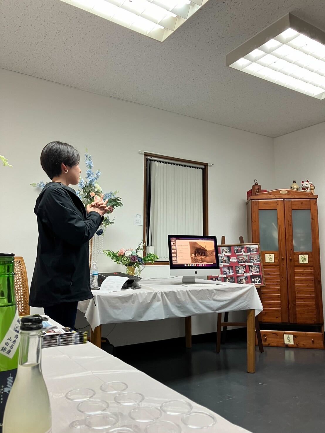 During the session, we provided an overview of the basics of sake, including its ingredients and classification, as well as the history and products of Izumibashi Sake Brewery. We concluded with a tasting session. Although I was a bit nervous conducting the seminar without an interpreter, the participants listened attentively, and we had a wonderful time engaging in conversation.
