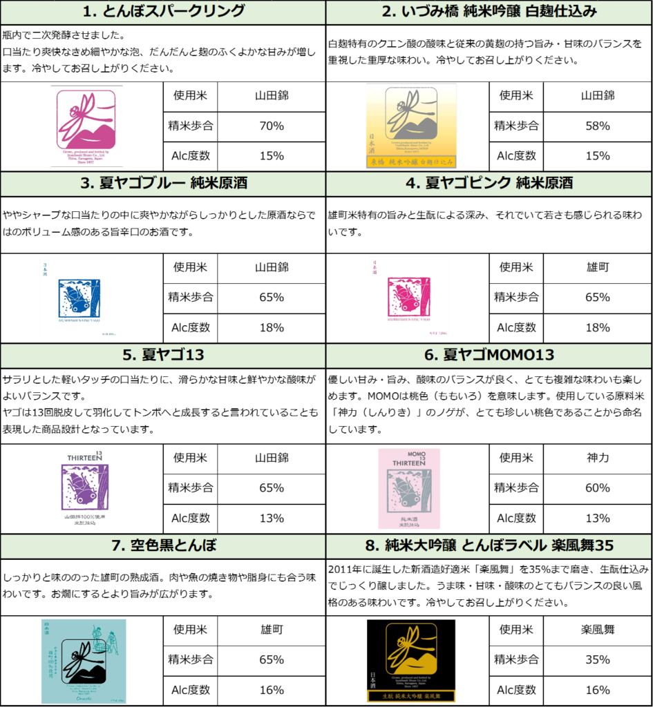 【陽なたぼっこ×いづみ橋】出品酒リスト