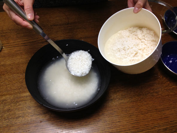 1週間ほど毎日1回かき混ぜたら出来上がりです。米の粒が柔らかくなり、塩角が取れたら出来上がりです。