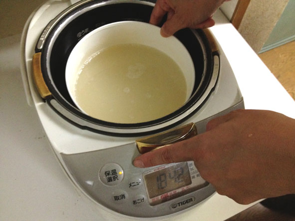 今度は、混ぜ合わせた材料を炊飯器を利用して保温し、酵素を活性化させてお米の旨み・甘みを出していきます。