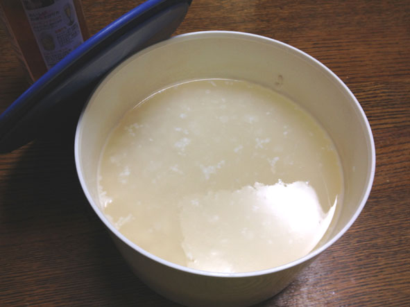 ・炊飯器に水を適量入れ、「保温ボタン」を押します。そこへ保存容器ごと炊飯器に入れ、2~3時間保温します。(麹の酵素を殺さない為に絶対に61度以上にしない)