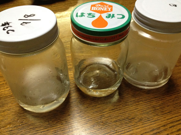 (写真)このような容器に小分けにして冷蔵庫にしまうと清潔でよいと思いますが、洗浄したビンなどは一度熱湯で殺菌してから使うと良いのですが、その場合はくれぐれも火傷には注意してください。