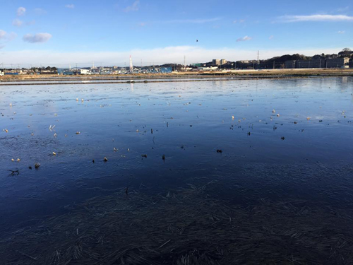 1/15 今朝は寒い!冬季湛水の田んぼも凍ってます。