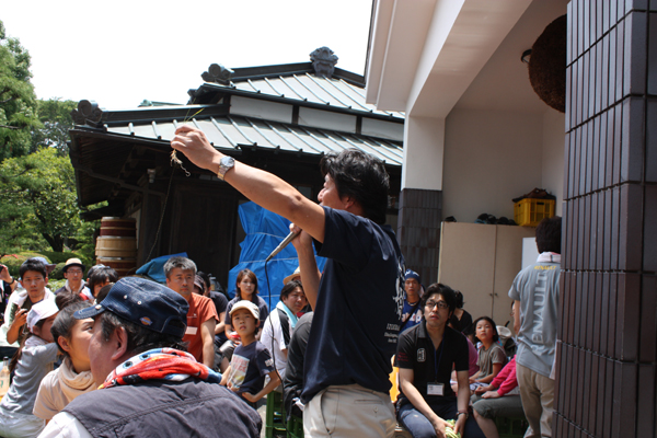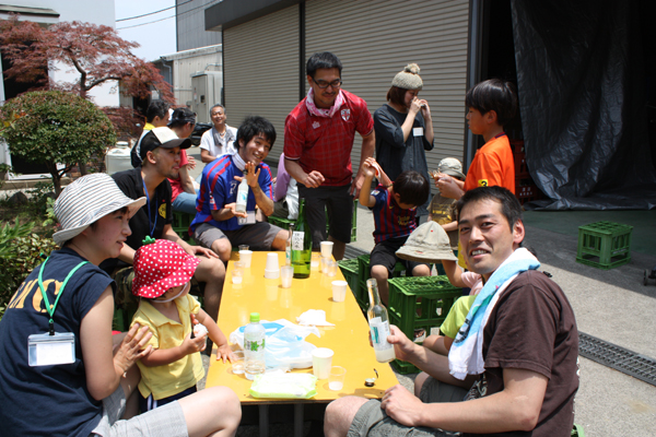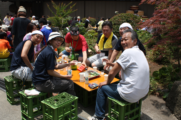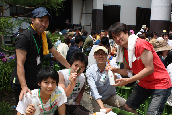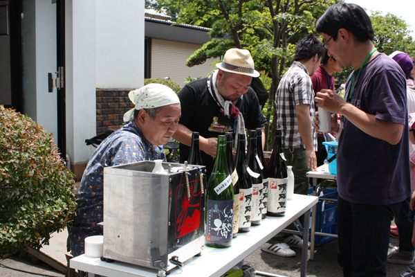 乾杯のお酒は「夏ヤゴにごり酒(微炭酸)」です。この日は、夏のような日差しでしたから、一杯目の炭酸はみなさんに好評でした。なんとこの日だけで、300ml詰めのこのお酒が、200本近くなくなりました。