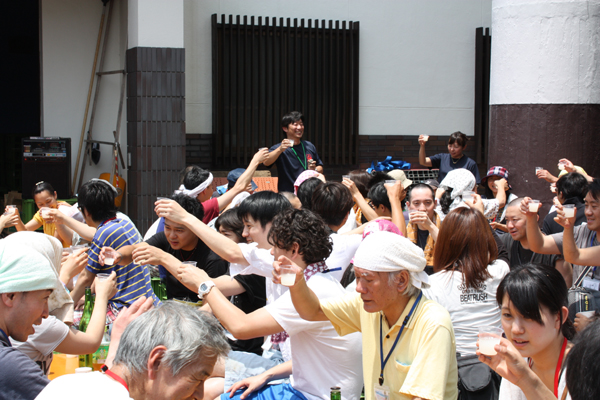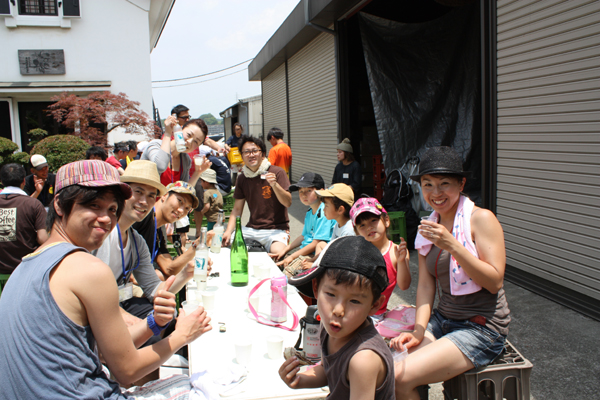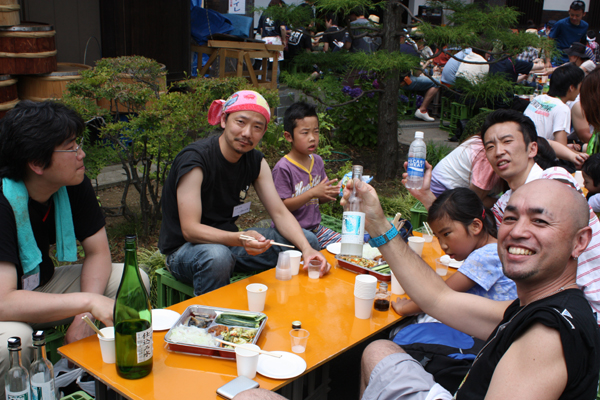乾杯の発声は「おめでとうございます」でした。この田植えは、平成25酒造年度の酒造りのスタート、つまり、正月のようなもの!?なので。でも、毎年田植えがみなさんとできることは本当にありがたいことと、心より感謝しております。