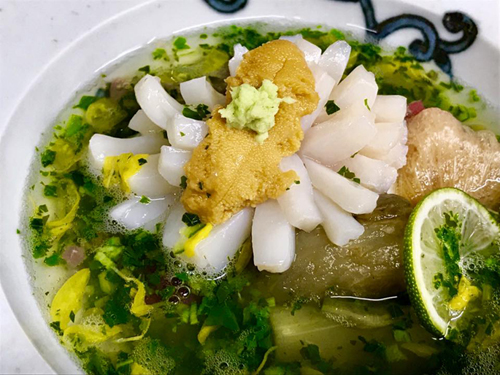 『三陸産帆立と生雲丹の菊花汁仕立て』