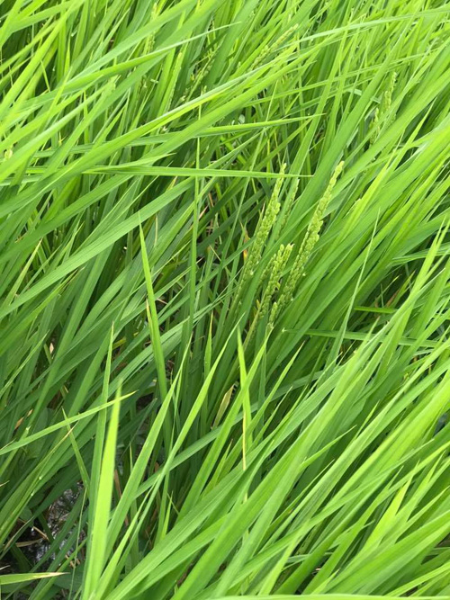 2017/08/31 酒米の出穂の様子 9月になり、蔵の周りは里へ戻ってきたとんぼがたくさん飛び交っています。ちょうど山田錦の出穂が始まりました。酒米三種三様。品種によって成長が違うことが一目でわかります。 8月半ばに出穂した亀の尾 8月末から出穂を始めた「山田錦」 まだ、出穂していない最も晩稲品種の「雄町」