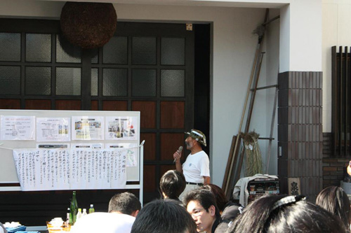 2013/10/14 10/13 第18回稲刈り会を開催しました 10/13(日) 快晴 今年18年目となる稲刈り&収穫祭をおかげさまで無事終えることが出来ました。暑いぐらいの陽気の中、秋のひとときを皆様と過ごすことが出来ました。 3連休の中日で、かつ、前日の営業明けの早朝から、多くの酒販店さま、飲食店さまにご参加頂きました。ほとんど寝ていないお客様も随分と多いようでした。皆様、ありがとうございました。