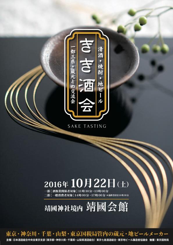 10月22日(土)午後から、東京、神奈川、千葉、山梨の酒蔵が大集合、レアなお酒も楽しめますよ。うちの蔵ももちろん参加します。