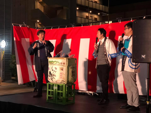2019/11/16 11/15(金)おでんナイト~新酒まつり~ 11/15(金)夜 海老名駅西口で行われました「おでんナイトニッポン~新米!新酒!えびな感謝祭~は、おかげさまで天候にも恵まれ無事終了しました。 昨年の倍以上(6000人)のお客様が来られ、金曜日の夜を楽しまれていました。 もちろん、新酒・楽風舞しぼりたても沢山の方に楽しんでいただきました。(感謝)