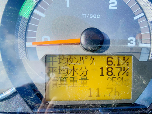 「食味&収量センサ」により、リアルタイムで田んぼごとの収量、米の水分・タンパク含有率がわかる優れものです!