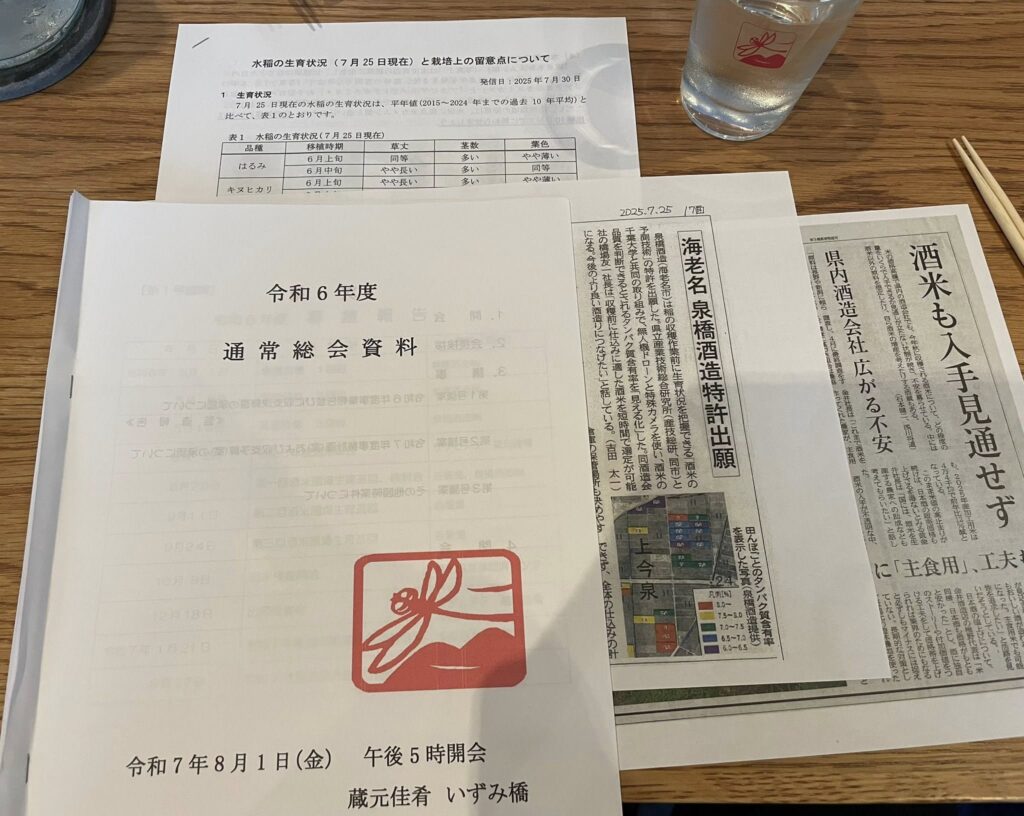 8/1 泉橋酒造の原料米を栽培していただいてる”さがみ酒米研究会”の総会でした。毎日が酷暑的な中、これからは追肥のシーズンに入ります。