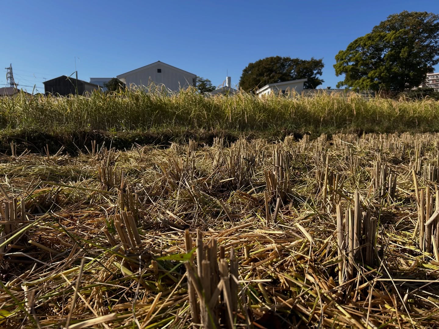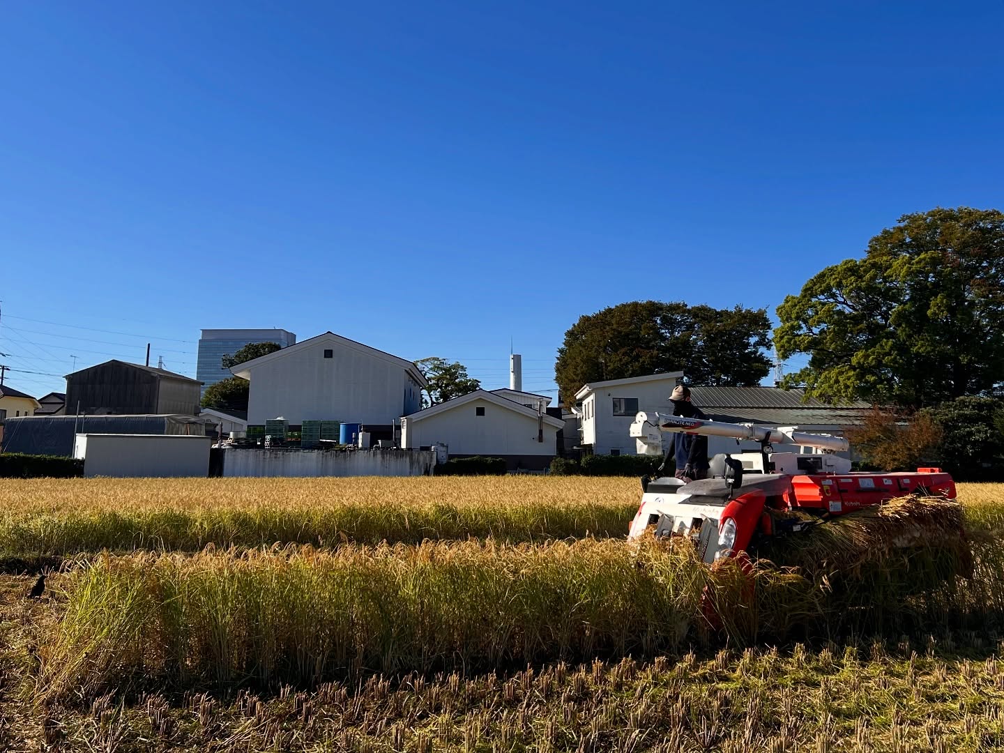 今日は蔵のすぐ裏の雄町米。春の田植えイベントで皆さまに植えていただいた田んぼです。今年は残念ながら中止になってしまったので皆さまの分も丁寧に刈りました