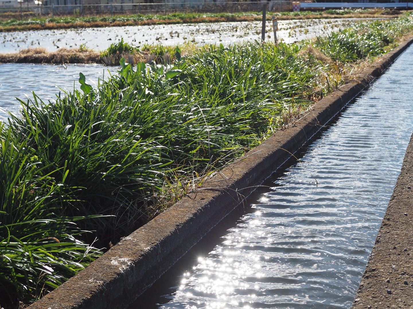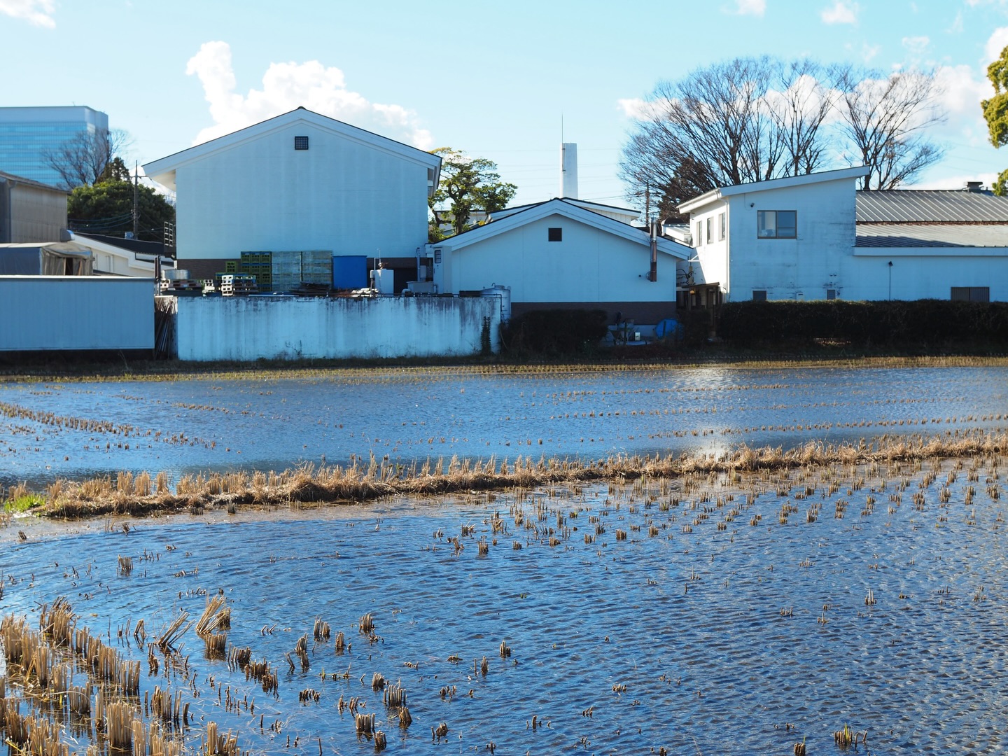 Seeing rice paddies filled with water in winter is not something you often come across.