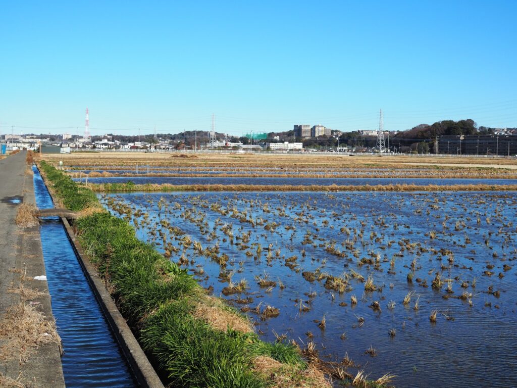 It’s a beautifully clear blue sky today over the Ebina rice fields.