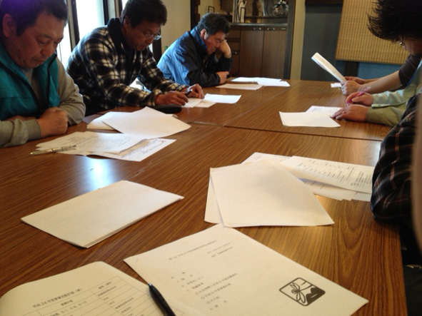 今回の総会は、盛りだくさんでした。ひとつには、例年の酒米の栽培面積、及び、農薬の使用限度の契約です。農薬の上限は神奈川県慣行基準の14成分に対して、最低でも半分以下にすることが研究会の決まりです。