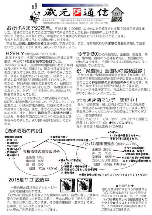 2018/06/12 6/3 第23回田植え会開催 Our Rice Planting day @Izumibashi sake brewery. /03/June/ 2018. さる6月3日(日曜日)に恒例の田植え会を行いました。 おかげさまで今年で23年目の開催になります。限られた人数さまではありましたが、晴天の中、250名を超えるお得意様(酒販店・料飲店さん)にご参加頂きました。 山田錦と雄町をそれぞれ2反ずつ手植え。営業明けの日曜の早朝からご参加頂きました皆様、ありがとうございました。(感謝)