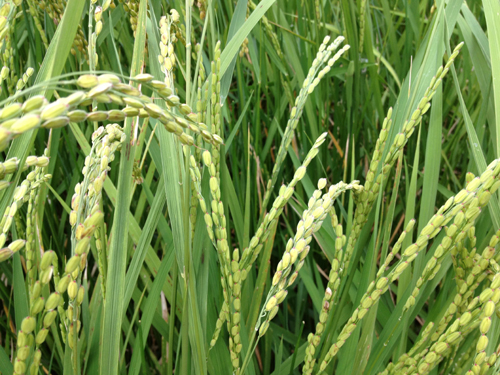 (写真)籾の先がピンク色の品種です。