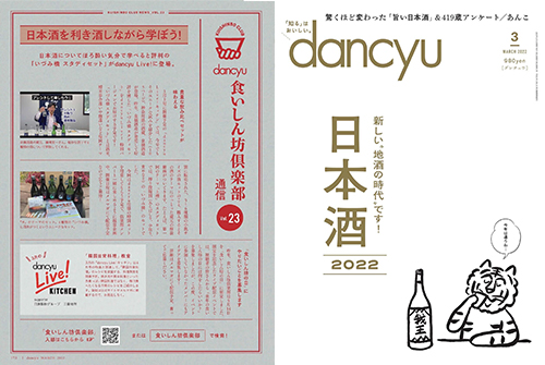 おかげさまで、dancyu(2022年3月号)の日本酒特集号の紙面(105ページ)で、弊社のスタディセット(動画付き日本酒飲み比べセット)をご紹介頂きました。