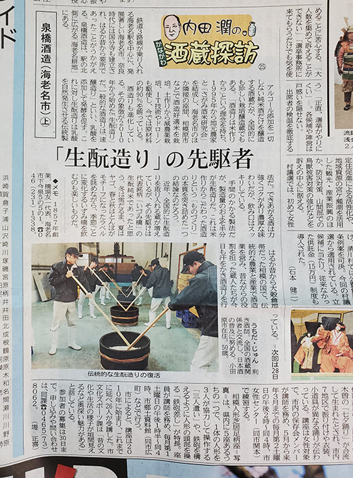 ◆神奈川新聞【内田潤の酒蔵探訪⑬】