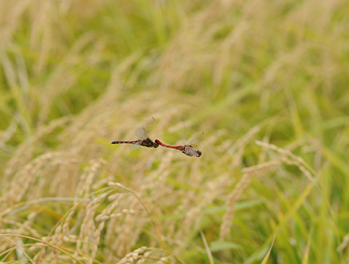 いづみ橋ではシンボルマークに赤トンボを使っています。赤トンボは田んぼで生まれ育つ生き物なので、農薬を減らせば単純にその生息数が増えていきます。