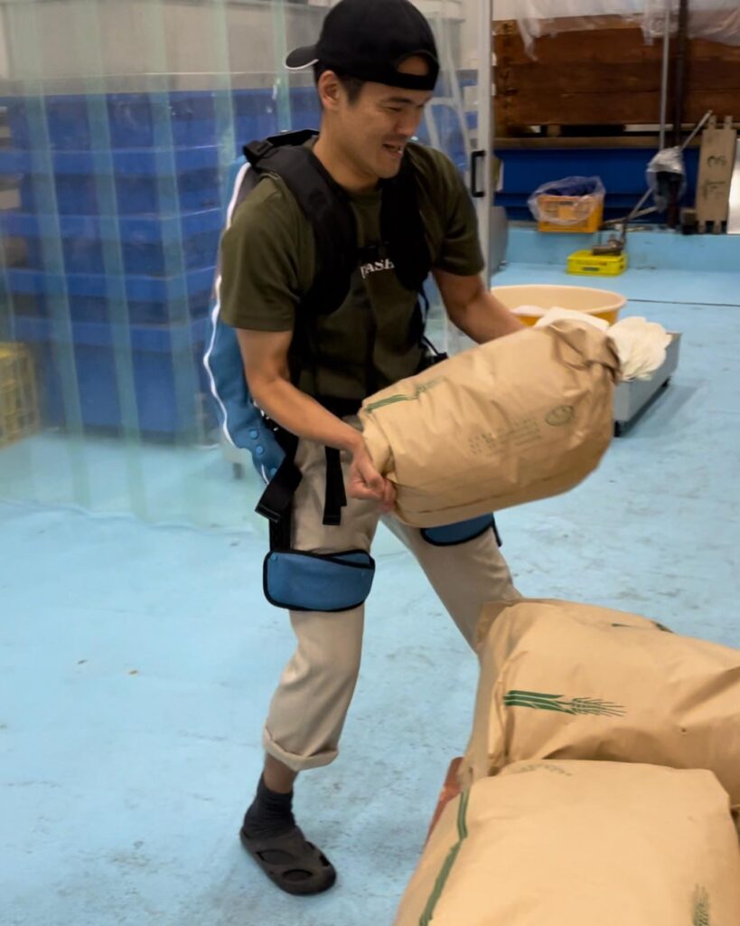 2023/11/08 着る、筋肉!マッスルスーツ。 着る、筋肉! 蔵の仕事では、米や酒粕など何かと重いものを持つことが多いです。身体の負担を減らすため、マッスルスーツを導入しました。 -25キロの負担になるのでかなり楽です。 シーズンは長いので身体を大事に、健康に酒造り! #マッスルスーツ #酒造り #いづみ橋 #いずみ橋 #泉橋酒造 #izumibashi #saketime #japanesesake #japan #sakestagram #sakegram #instasake #sake #saké
