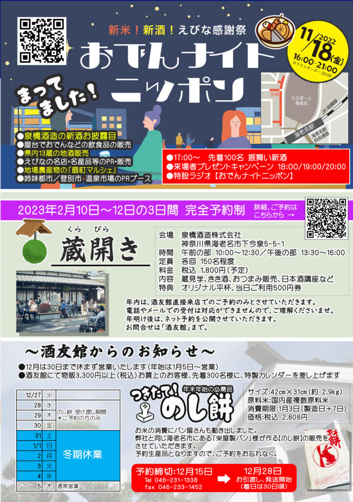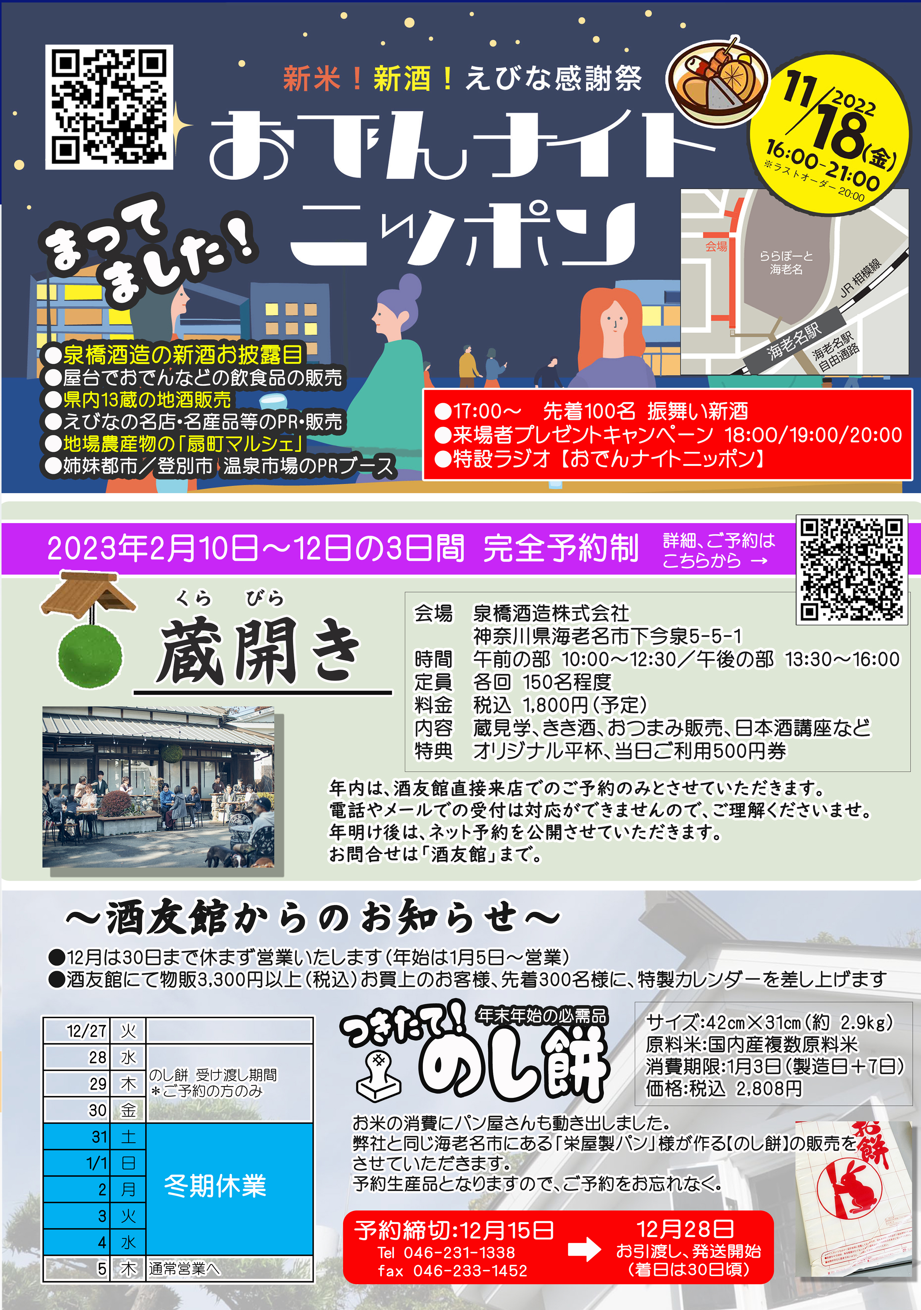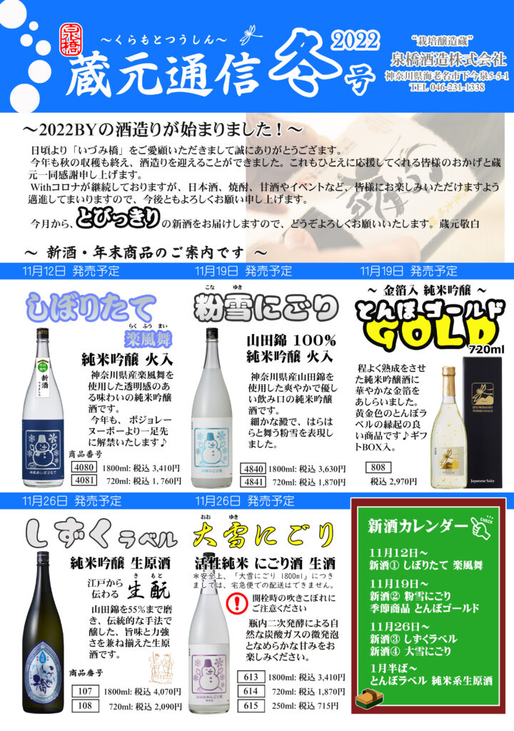 蔵元通信2022冬号~2022BYの酒造りがはじまりました。
