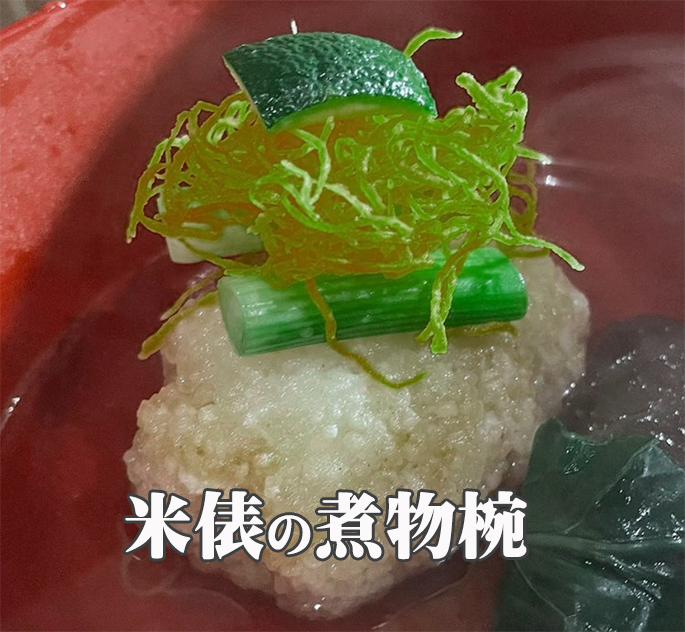 • 白身魚に薄塩を当て、片栗粉、卵白、酒米の順にまぶし、油で揚げ吸地で味をふくめると共に油抜きをします