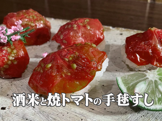 • 酒米を炊いて、淡口醤油、スダチのしぼり汁を混ぜかけて酢飯とします。
