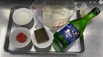 ※酒米は、軽く水で洗い、流水で5分晒した後、5分浸水させ、10分水切り後、昆布出汁に8時間以上浸け、水気を切っておく