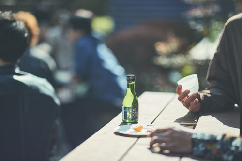 この照らす(テラス)席は、新たにお客様が酒蔵に集い、お酒の試飲や時には野外でのイベントなどが出来るようにと作りました。