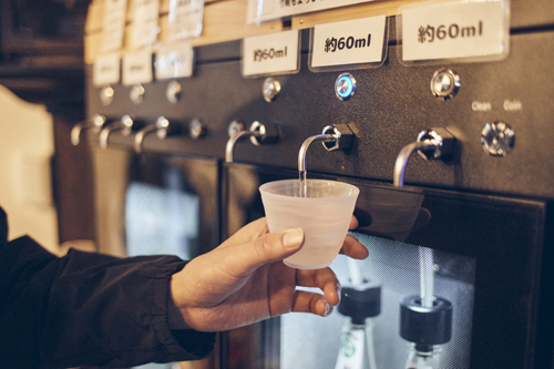 (写真)非接触型のコイン式日本酒サーバーを設置しました。