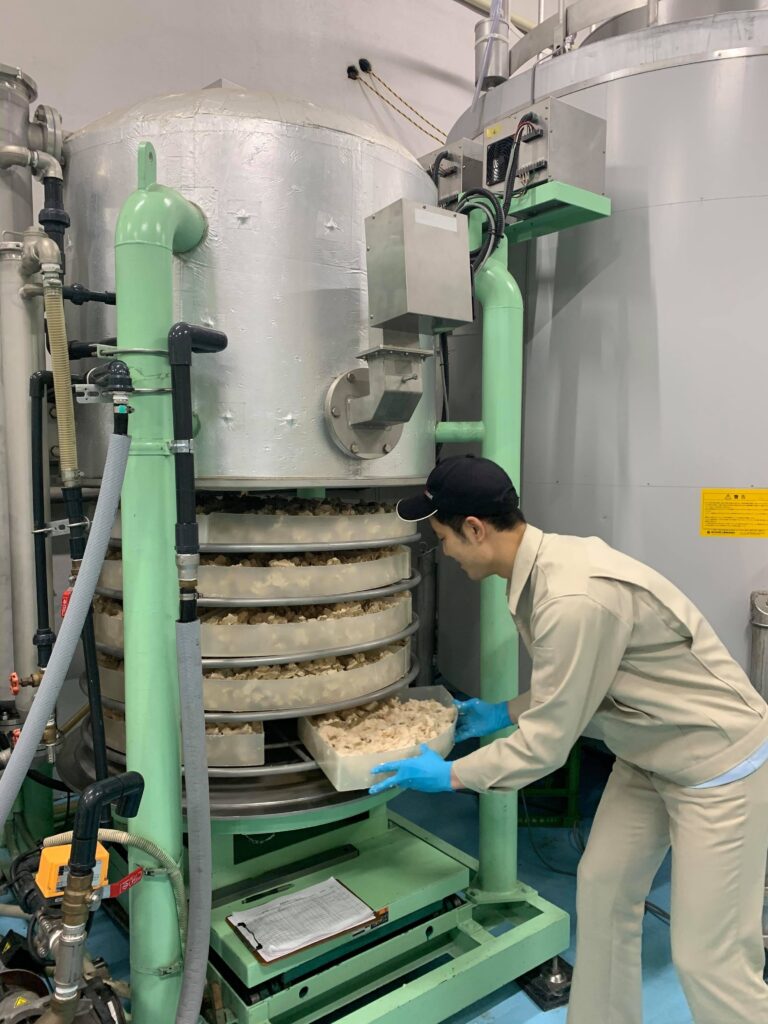 (写真)真空減圧蒸留機に酒粕を入れて、粕取り焼酎を造ります。