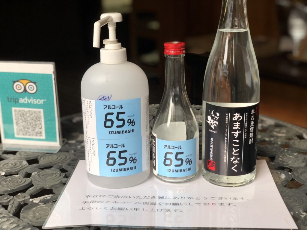 4月末と言えば、ちょうど日本酒の造りが終わるころ、やっと出来た焼酎を更に何度も何度も蒸留し、「手指消毒用の高濃度アルコール」の生産を2ヶ月ほど続けました。
