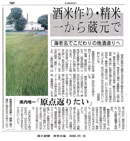 2006年秋、泉橋酒造は、農業、精米、そして、醸造の一貫生産体制へ