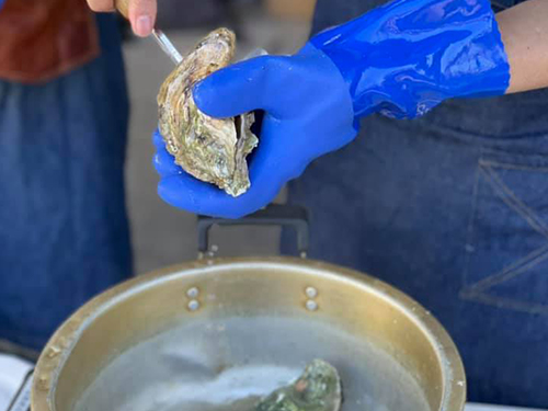 直営レストランにいつも新鮮な牡蠣をご提供頂いている生産者である宮城県東松島の「和がき」さんにお越しいただき、ワイルドに牡蠣を蒸して頂きます。