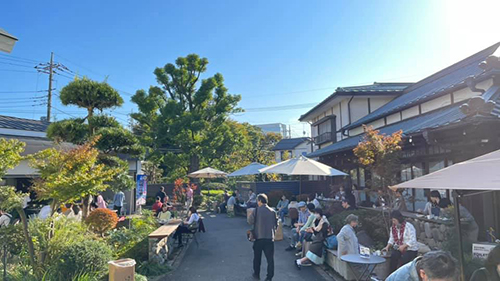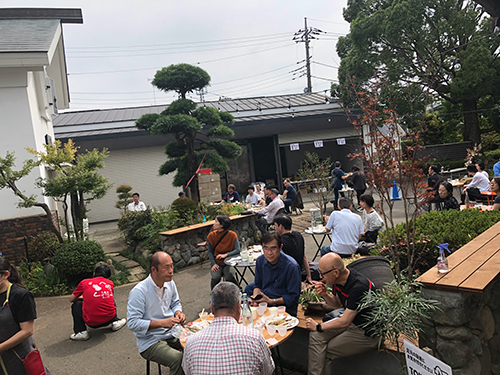 太陽のもと秋の気配を感じるオープンな泉橋酒造の照らす席(テラス席)で牡蠣とお酒をお楽しみください。