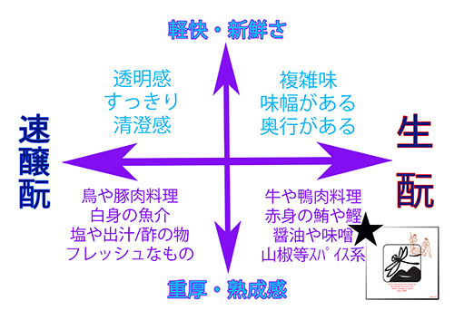②、③は、速醸酛で仕込んだ酒より、より自然界の味わいが活きており、味に幅があります。速醸酛造りは、透明感のある酒質に適しています。(乳酸やアミノ酸が多いので、お燗向きでも)また、火入れして寝かせたお酒はお燗するとまた格別の旨さです。