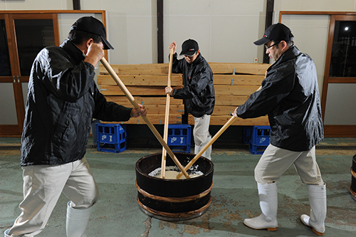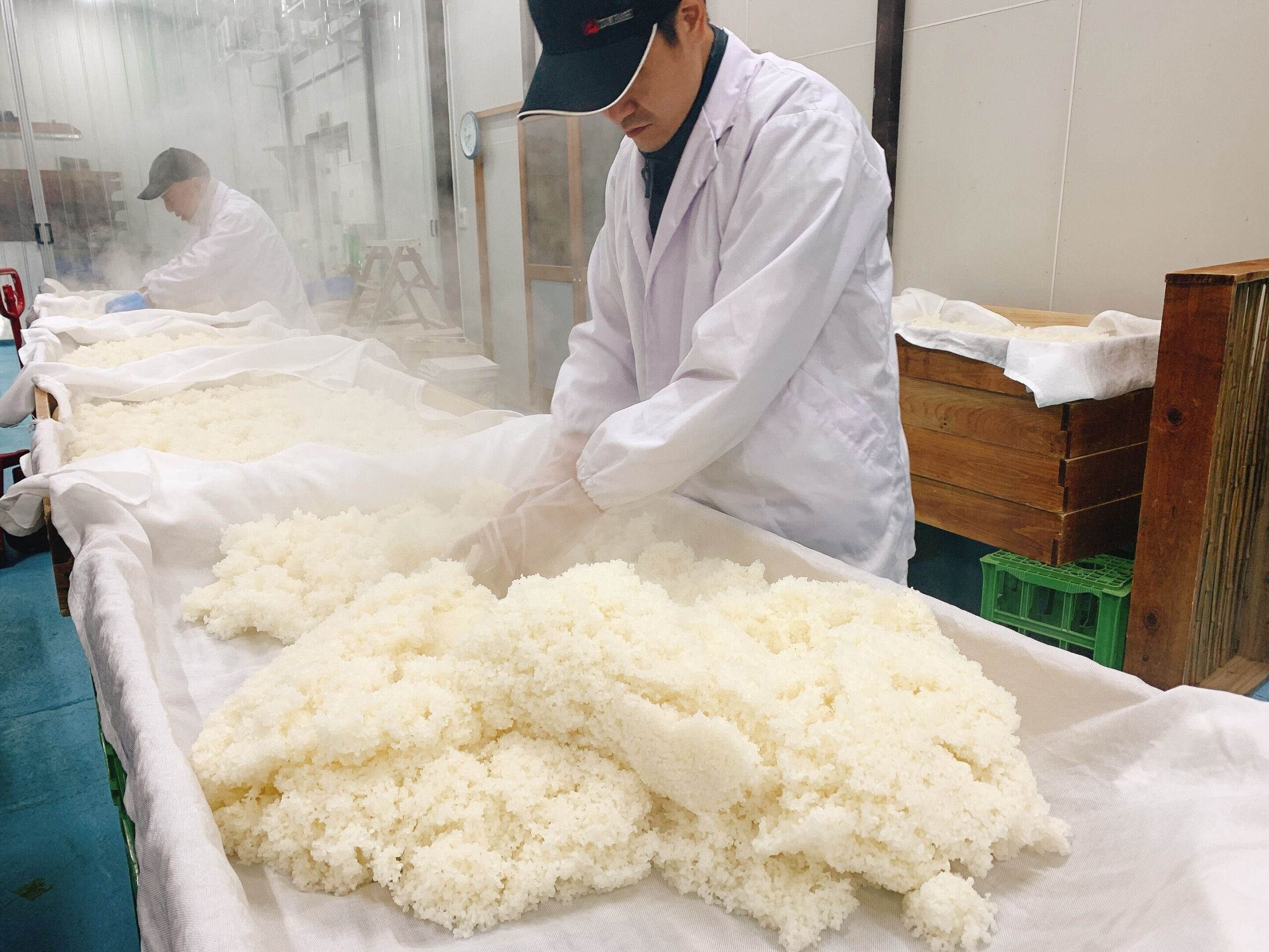 弊社のお酒は、農業から醸造までの一貫生産です。夏場は酒米栽培(約8ha)を、冬場は日本酒の醸造、製品作りをします。弊社の酒米生産者グループ「さがみ酒米研究会」とも連携をしていきます。